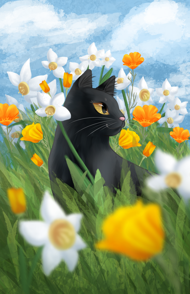 Drawn in Jan 2024. When drawing cats the whiskers are more of 2 blobs on each side of the head(as seen in my other artwork and logo), except when I want to do a more realistic style like this one.